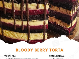 Sastojci: Kore (možeš praviti 2-3 kore, u zavisnosti od veličine): 5 jaja 150 g šećera 1 vanilin šećer 120 g brašna 30 g kakaa 1 kašičica praška za pecivo Prstohvat soli Fil: 300 g šumskog […]