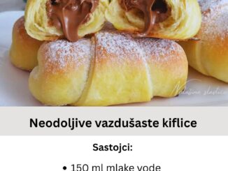 Evo detaljnog recepta za šarene kiflice. Sastojci * ½ kvasca (20 g) * 2 kašike šećera * 1 šolja mleka * 1 šolja ulja * 2 jaja * 500 g brašna (oko 4 šolje) * […]