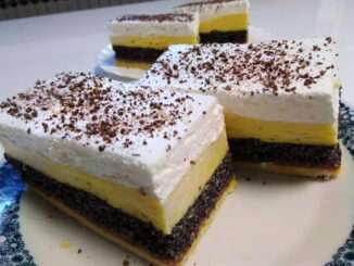 Ako volite kremšnite, a na stolu želite imati tortu… Nema problema, moguće je pomiriti to dvoje! Sastojci: paket zaleđenog lisnatog tijesta (2 bloka tijesta su u pakiranju) Žuta krema: 10 žumanjaka 300 g glatkog brašna […]