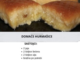 🍯 Domaće hurmašice – recept i priprema Sastojci za tijesto: 500 g brašna (meko, tip 400) 150 g maslaca ili margarina 100 ml ulja 2 jaja 1 prašak za pecivo (10 g) 2 kašike jogurta […]