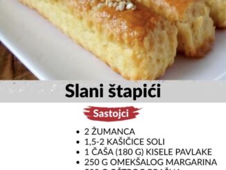 🥨 Recept za domaće slane štapiće Sastojci: 500 g brašna (T-400 meko) 1 kašičica soli 1 kašičica šećera 1 kašičica praška za pecivo 150 ml jogurta 100 ml ulja 1 jaje 50 g putera (sobne […]