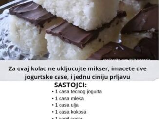 🍰 Brzi kolač sa jogurtom i kokosom (bez miksera) Sastojci: 1 čaša tečnog jogurta 1 čaša mleka 1 čaša ulja 1 čaša kokosa 1 vanilin šećer 2 čaše šećera 2 čaše brašna 1 kašičica praška […]