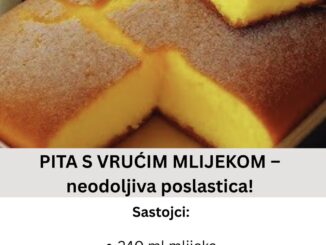 🧁 PITA S VRUĆIM MLIJEKOM Sastojci: 240 ml mlijeka 70 g maslaca 4 jaja 250 g šećera 350 g brašna 1 prašak za pecivo (10–12 g) 1 vanilin šećer ili malo ekstrakta vanilije prstohvat soli […]