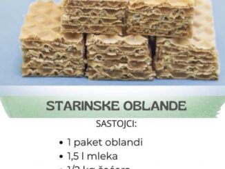 POTREBNI SASTOJCI: Za pripremu recepta potrebno vam je 9 kašika vode, 20 dkg šećera, 15 dkg mljevenih oraha, badema ili lješnjaka, 25 dkg mljevenog keksa, 17 dkg maslaca i 10 dkg čokolade za kuhanje. Za […]