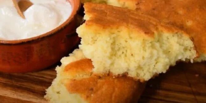 Priprema: U posudu prvo umutite bjelanca pa im dodajte bijelo brašno i prašak za pecivo, a potom so, kukuruzno bijelo brašno, pa izmiješajte. Dodajte sir, ulje, jogurt, mineralnu vodu, žumanca i sve lijepo izmiješajte. Pecite u zagrijanoj rerni oko 45 minuta na 180 stepeni Celzijusa.