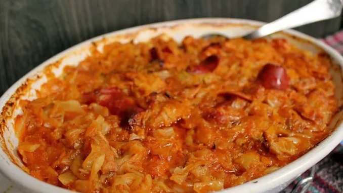 Kada je višak vode ispario, a možete ga i odliti, potrebno je da ostane malo masnoće i vode kako bi se kupus u rerni pekao a ne kuvao, a opet da ne zagori.