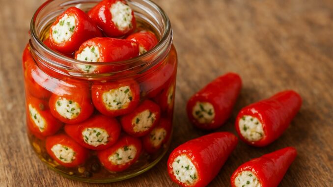 Ako volite neobične i gurmanske specijalitete u zimnici, punjene papričice – poznate i kao gambije – sa sirom pravi su izbor. Ove male, mesnate i blago ljutkaste paprike pune se kremastim sirom, a zatim se čuvaju u maslinovom ulju ili kiselkastoj marinadi. Rezultat je pikantna, aromatična i dekorativna zimnica koja će svaku trpezu učiniti posebnom.