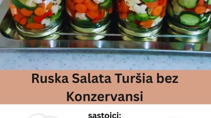 Ovo je recept za kiselu zimnicu, u vidu mešane turšije, koja po sastavu povrća podseća na sastojke za rusku salatu, ali se konzervira bez veštačkih konzervansa.